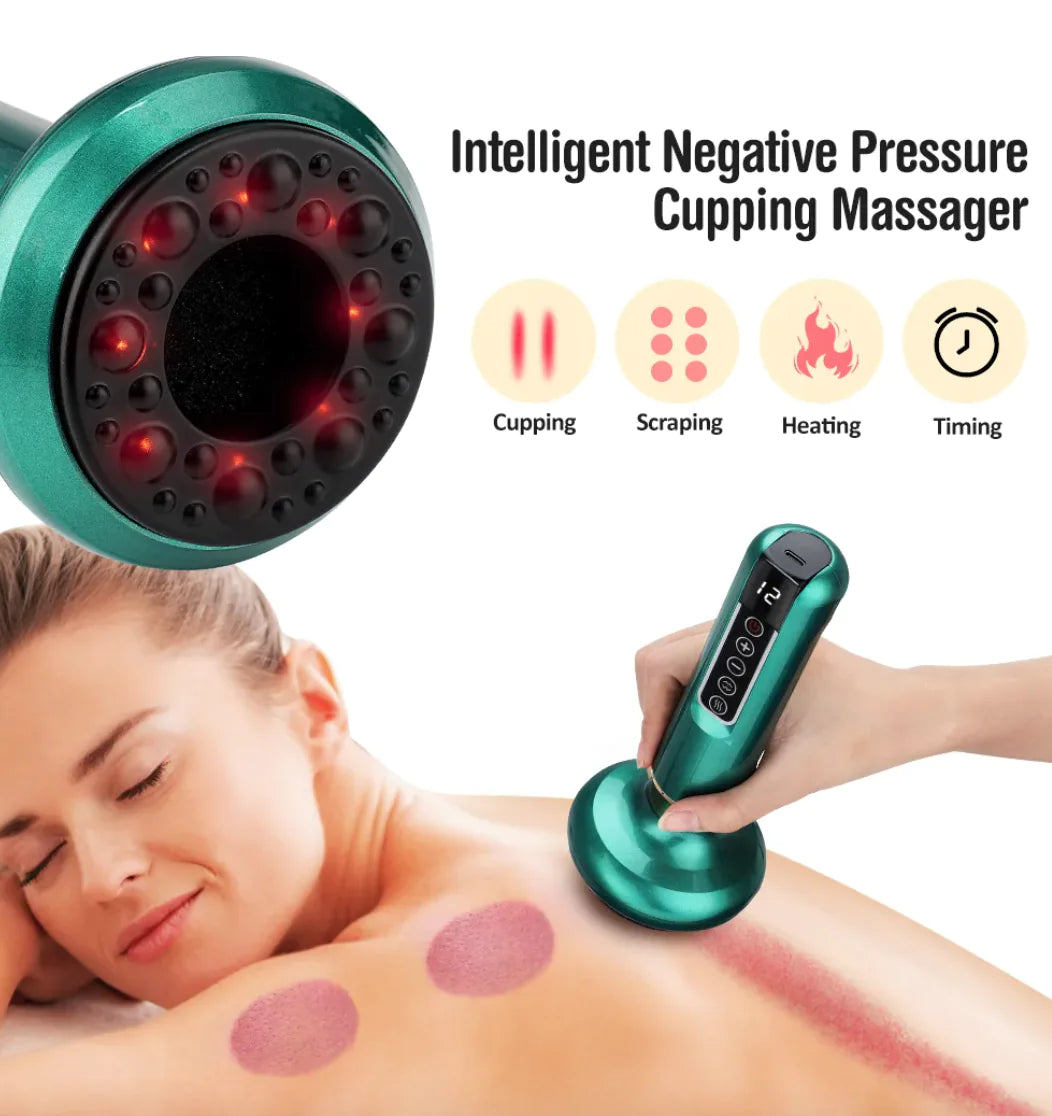 Experience deep tissue relief with this electric vacuum cupping massager, designed for gua sha, cellulite reduction, and body slimming. Featuring adjustable suction levels, this device enhances blood circulation, promotes lymphatic drainage, and helps relieve muscle tension. Perfect for at-home spa treatments, it offers a relaxing and effective way to rejuvenate your body.